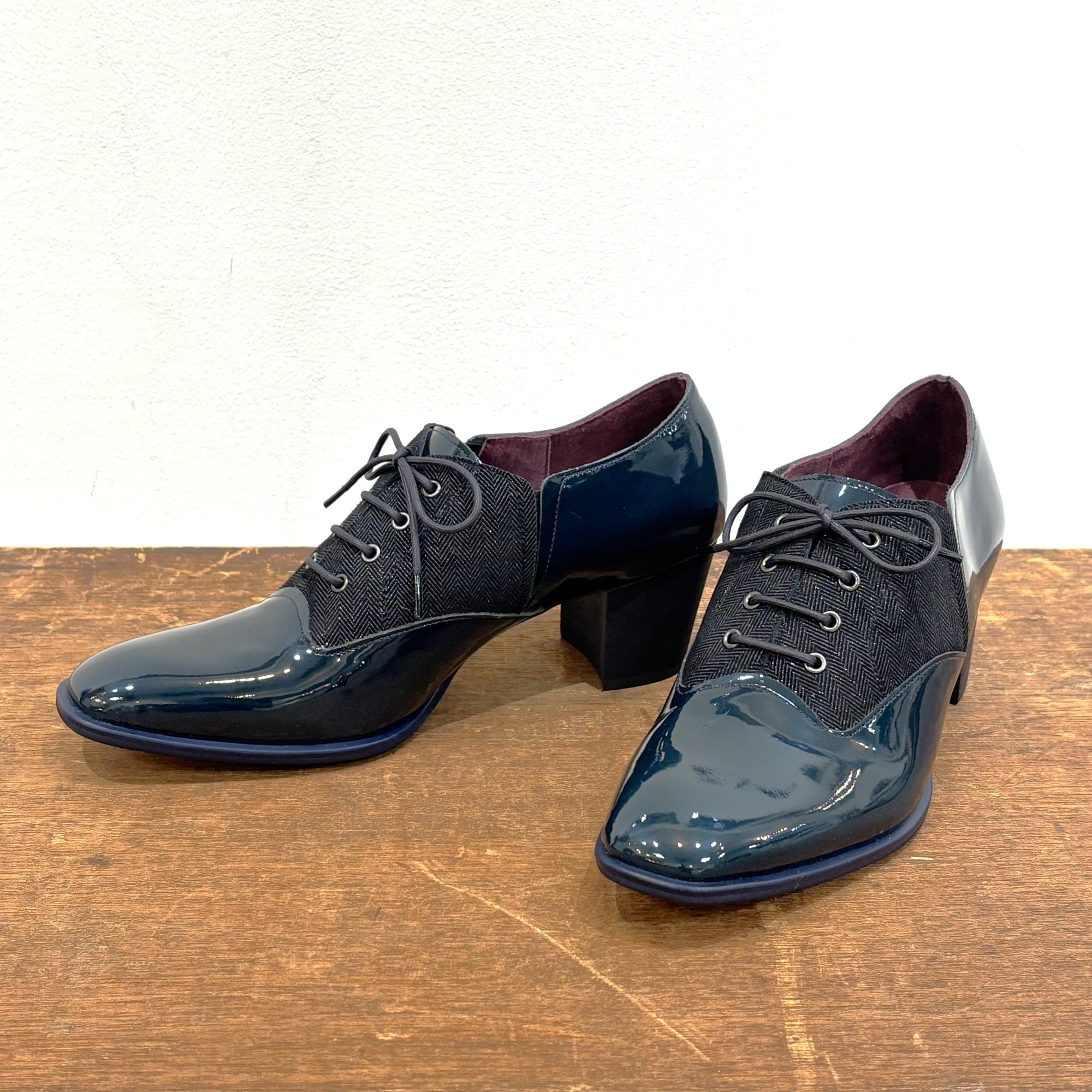 スッキリしたシャープなスクエアトゥのマニッシュシューズ。足首を綺麗にみせるサイドカーブのカットラインにこだわってます。また履き口の内外の両側にスリットゴムが入っているので、紐を解かずそのままスリッポン感覚でお履き頂けます♪