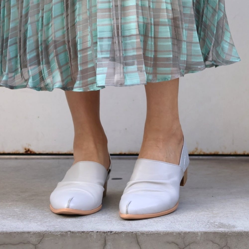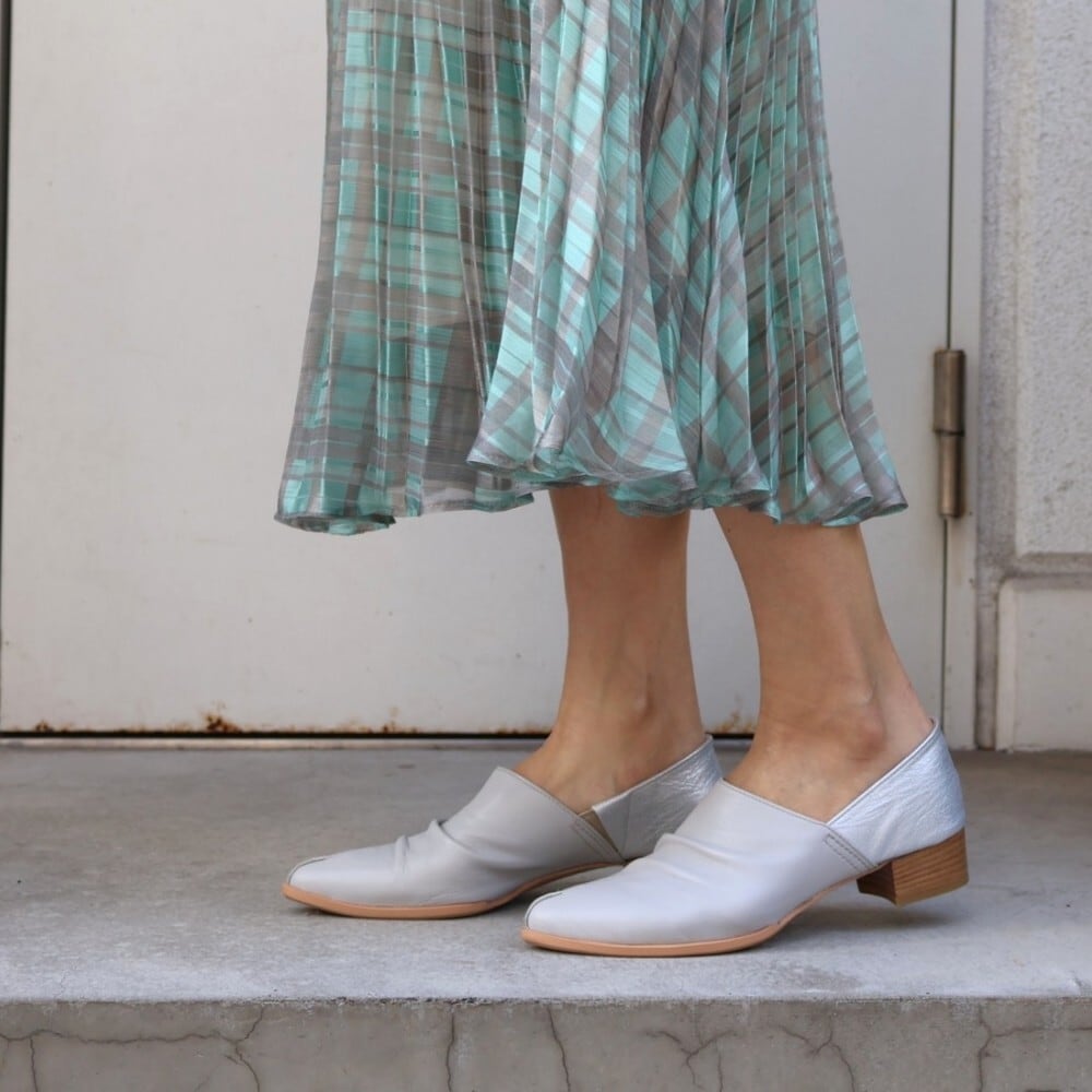 踵の芯材もソフトな物を使用し、バブーシュ感覚で踵を踏んでも履ける2WAYタイプになります。甲部分には足当たり、足馴染みのソフトレザーを使いフィット感を追及したデザインです。