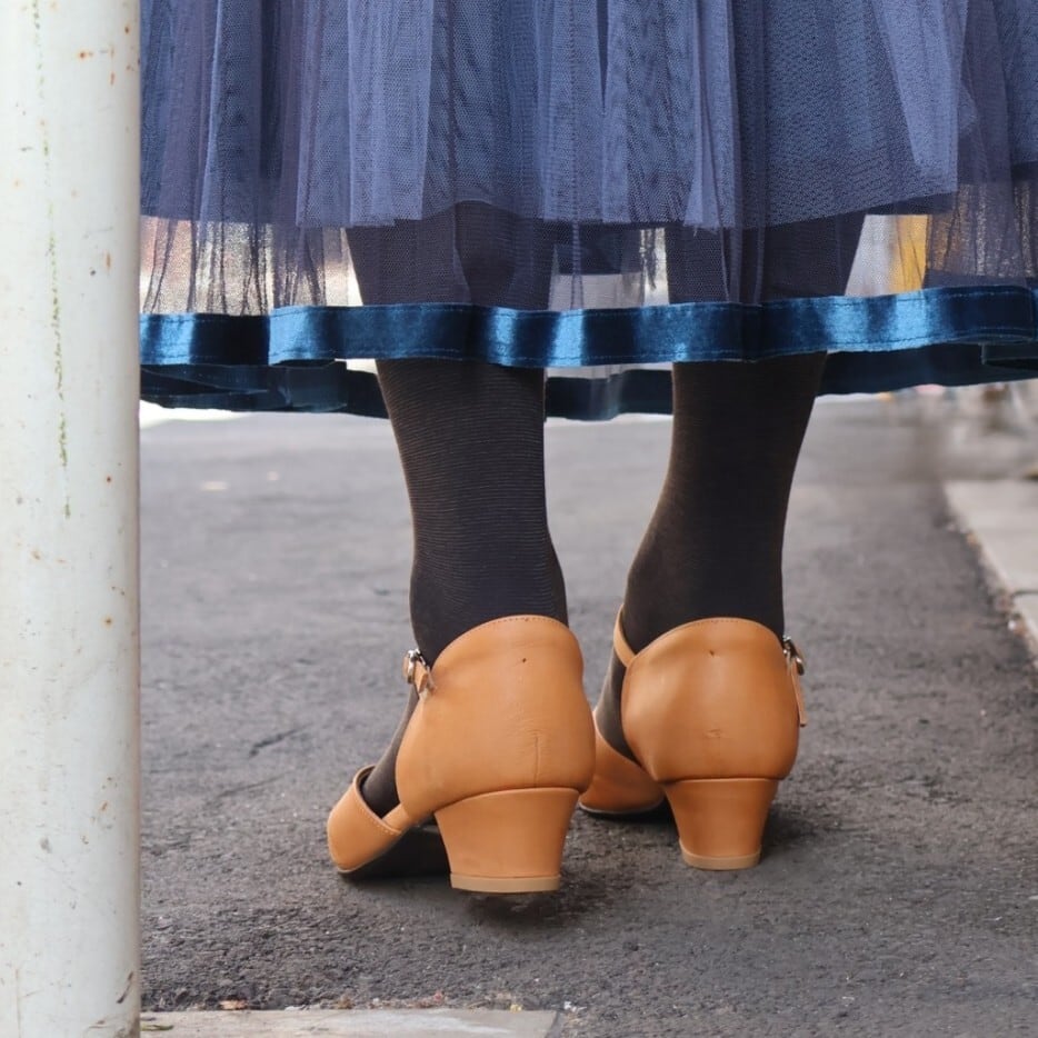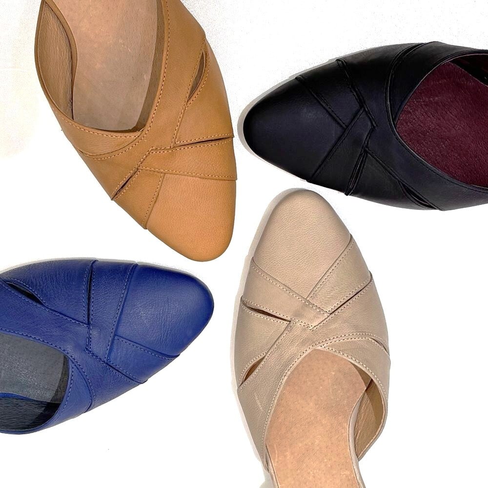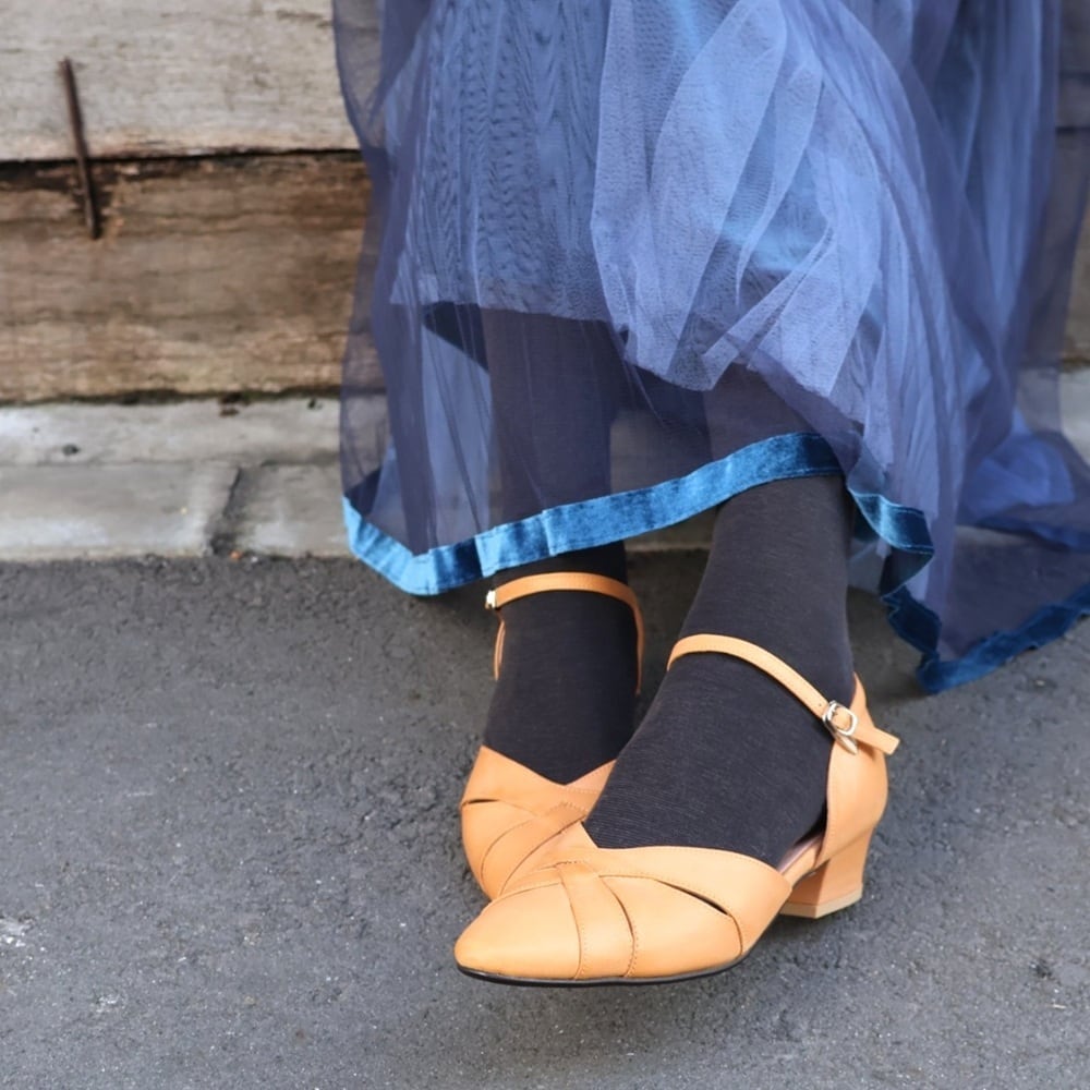アーチカーブのフィット感とチャンキーヒールで安定感のある木型で作った甲深ミュール。ブーティー感覚の深さは甲の押さえが良く、履きやすく脱げにくいのも◎