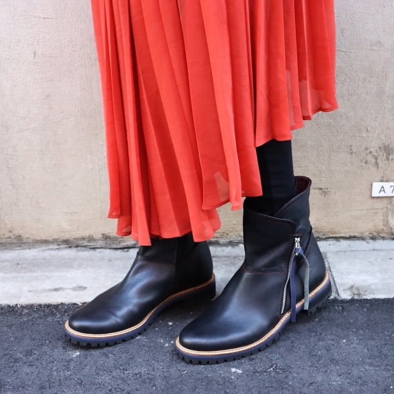 サイドの揺れるフリンジ、カラーステッチがアクセントなちょい個性デザイン。足首を後ろ目にしたシルエットなのでカジュアルながら足が綺麗に見えるのもデザインのポイントです。昨年あたりから注目している「BROWN」系のバリエーションを豊富に提案します