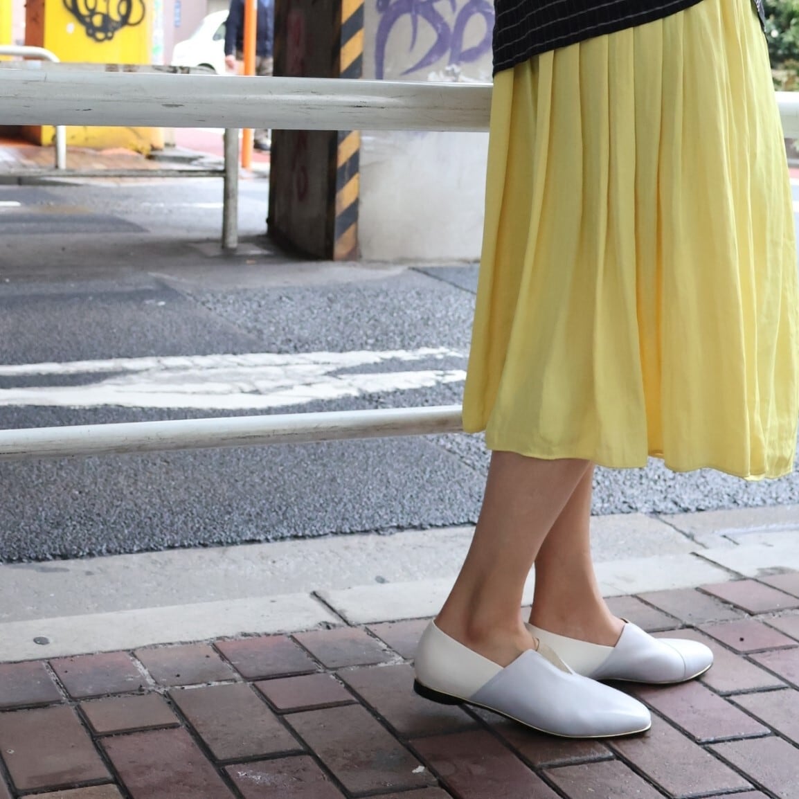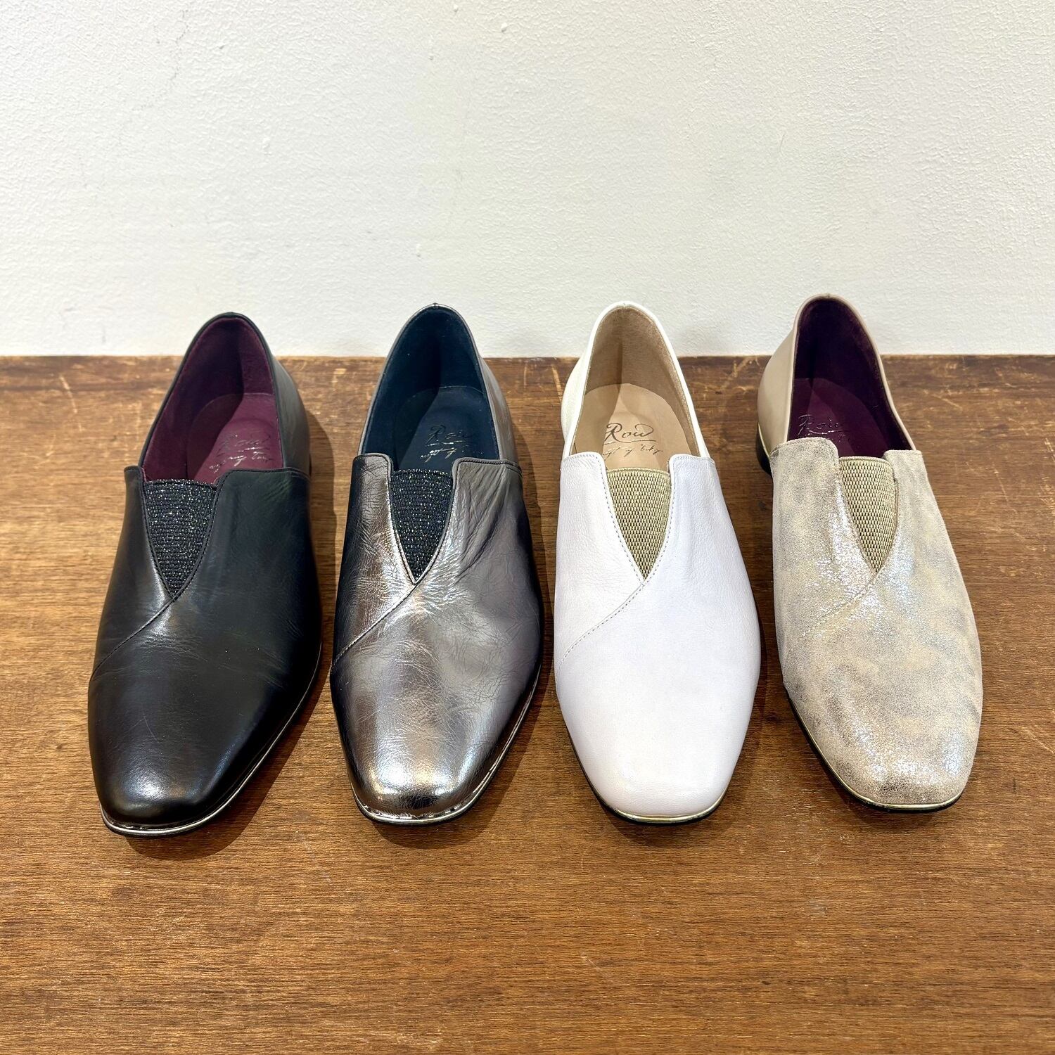 スッキリ細身トゥラインのスクエア木型で、甲にスッとスリットを入れたシャープでいてモード感のあるシンプルスリッポンを作りました。