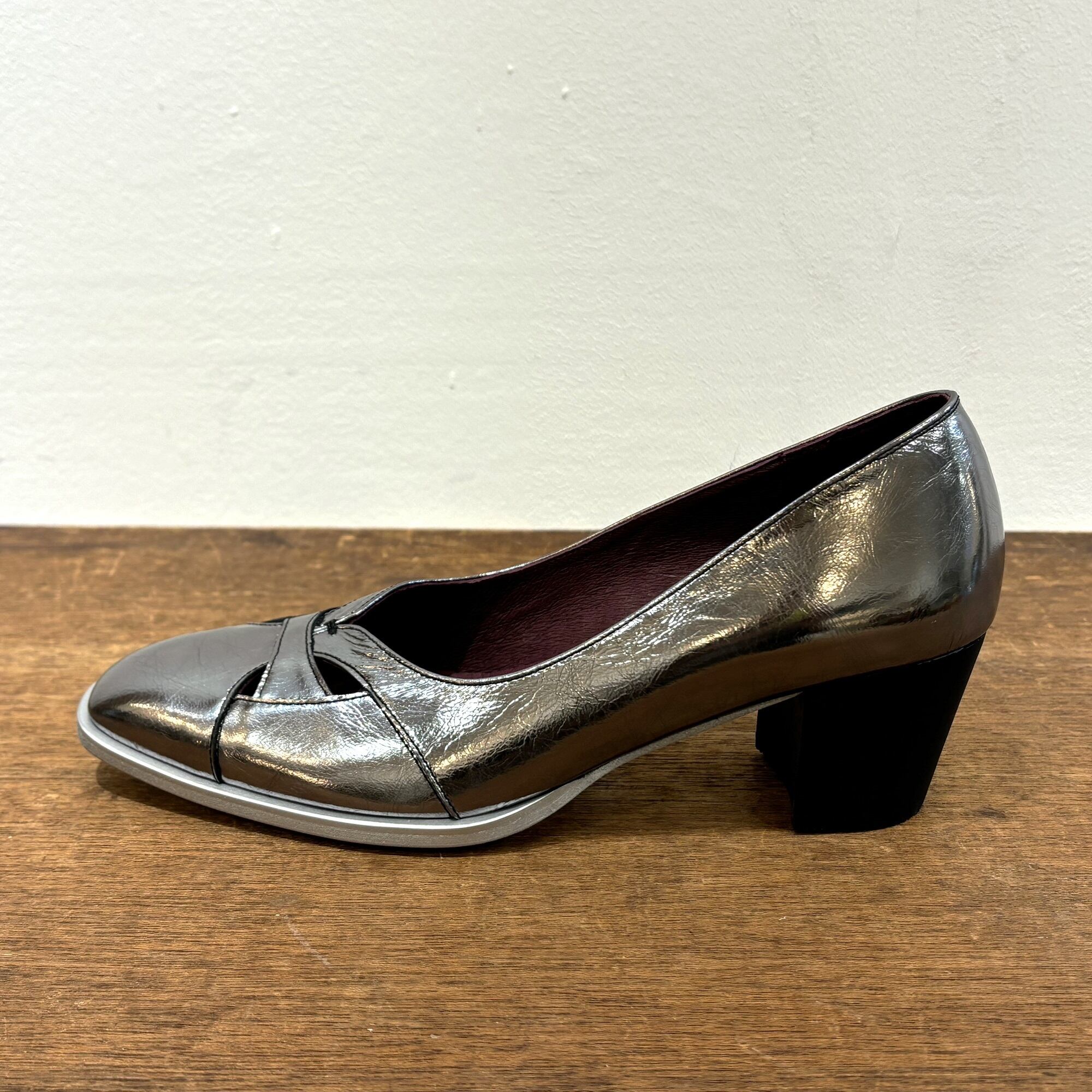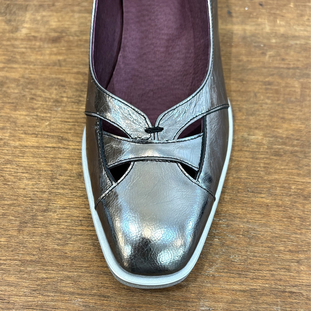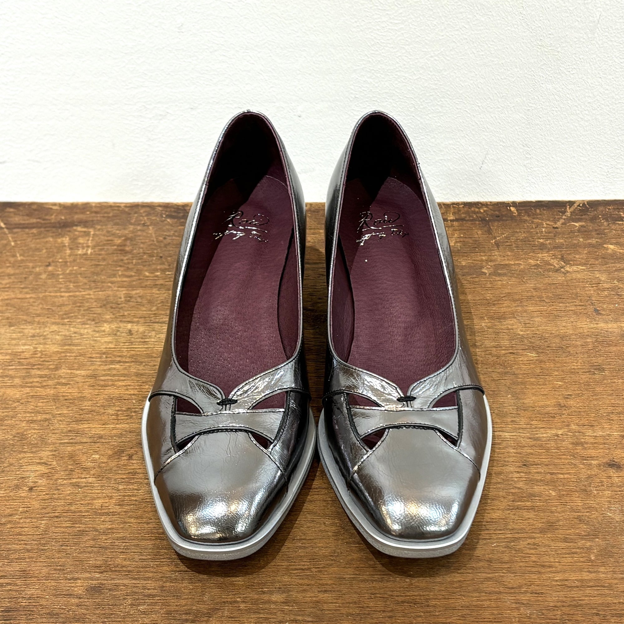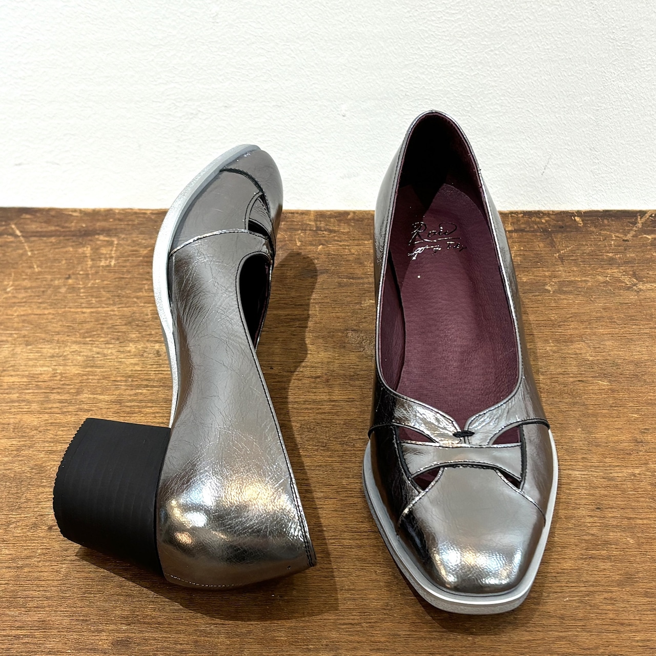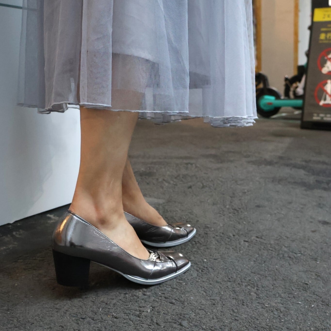 伸びのあるスクエアな木型で仕上げた、抜け感のデザインパンプス。綺麗な女性らしい足元にこだわってます。素足でもカラータイツでも映えるデザイン!